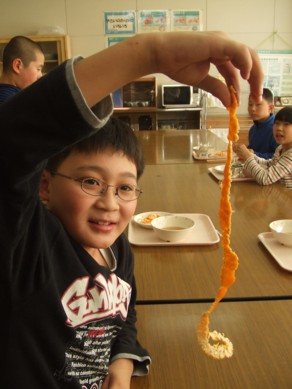 そのときに試食で残ったあら揚げも給食で一緒に食べました。