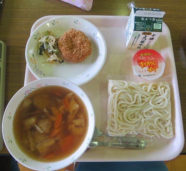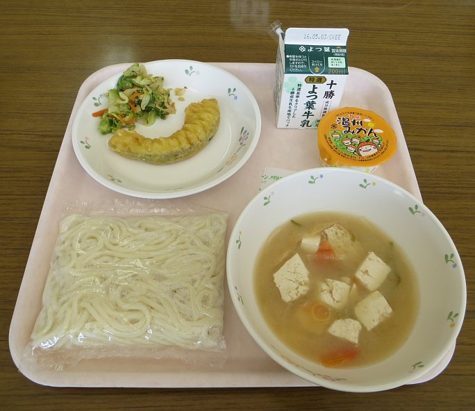 今日は金曜、麺の日です!今日のメニューは味噌けんちんうどん!
