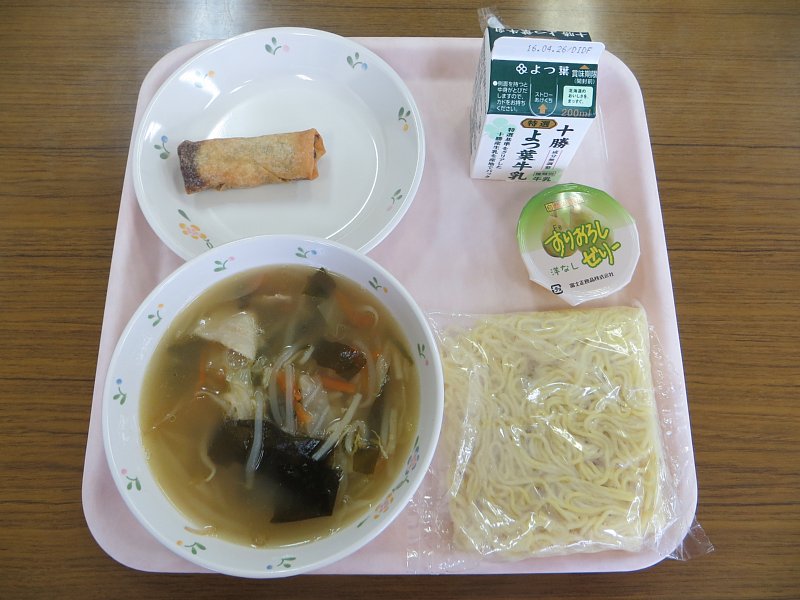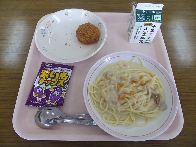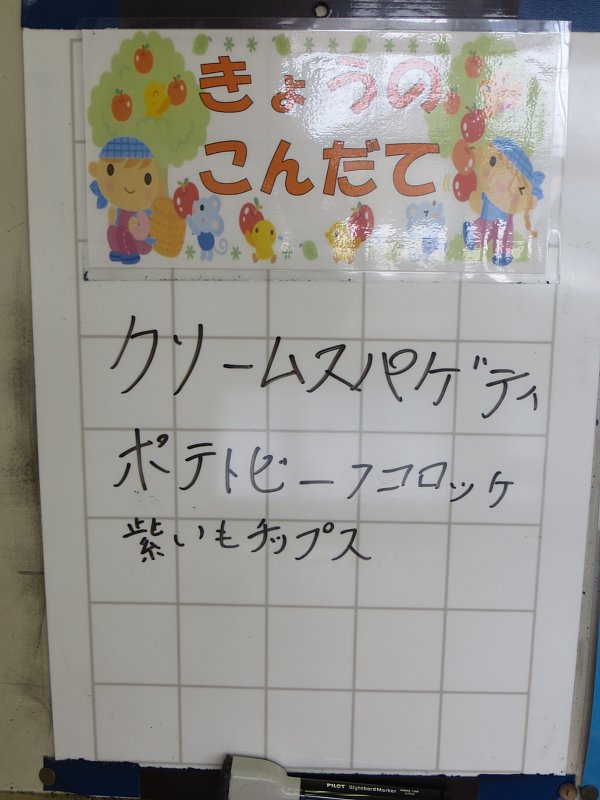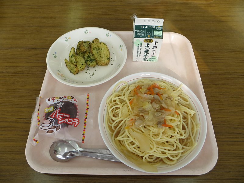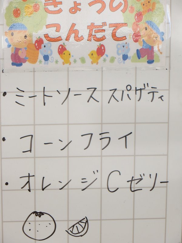 今日は金曜、麺の日です!今日のメニューは和風スープスパゲティ!和風とはいえ、ブイヨンベースのあっさりしたスープに、玉ねぎ、キャベツ、ニンジン、マイタケ、しめじ、ベーコン、が入っています。ニンニクがアクセントになっています。スパゲティの味そのものを味わうことができる、ちょっと大人のスープスパでした。