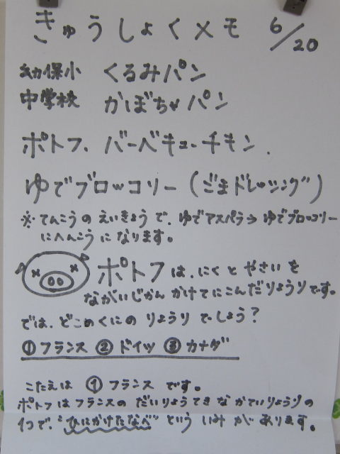 今日のきゅうしょくメモにもクイズがありました。(ちなみに答えはこれです)