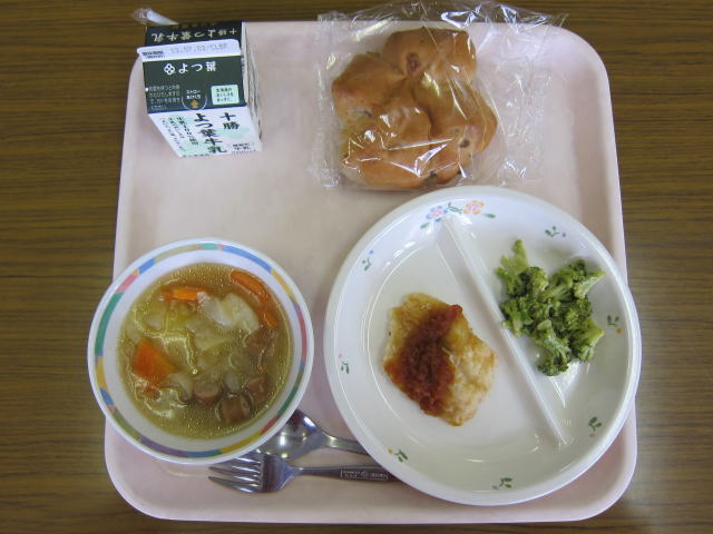 きゅうしょくメモやご家庭に配布している献立表には書いていませんが、今日の給食にはコッペパンに塗るバターもついてきています。