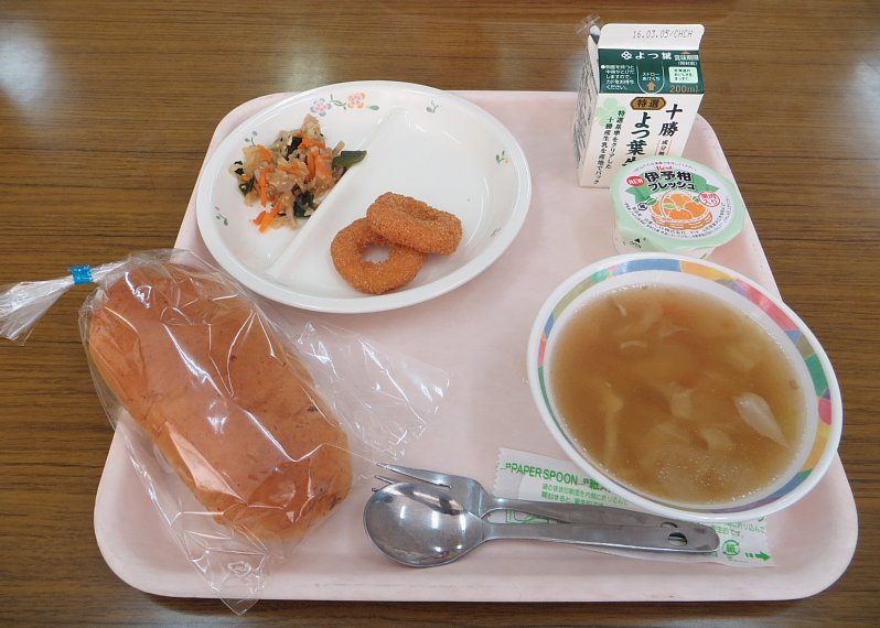 さて、本日のメニューはパン食です。ほのかに甘いミルクパン。味の濃いミネストローネともよくあります。