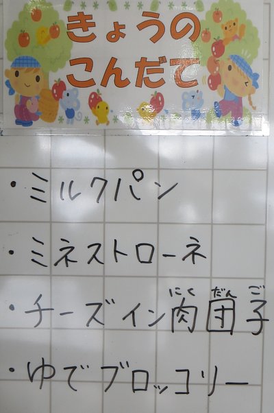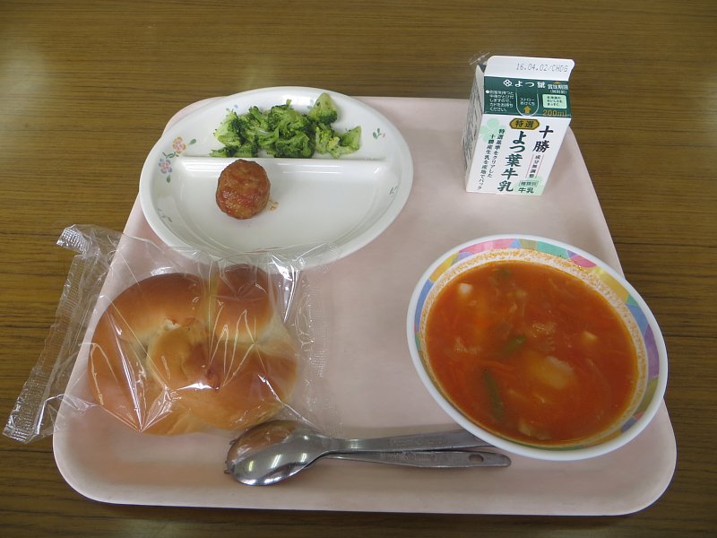 そのミネストローネ。1年生の子の中にはスープの酸味が苦手、という子もいましたが、たっぷりの具にトマトの酸味が美味しいスープです。
