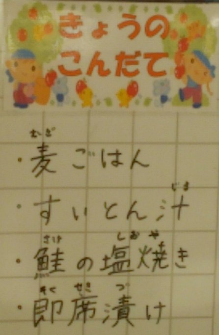 今日のご飯は麦ごはんでした。カレーなどの時に麦ごはんが出ることはありましたが、普通のご飯の時に麦が入っていることはありませんでした。いつもはカレーの味に隠れてしまい、白米だけの時との味の違いには気が付きにくかったのですが、麦ごはんだけで食べてみると、結構しっかりと麦の味がします。また、食感も白米だけの時とは違います。子ども達からは、「あ、麦ごはん美味しい!」という声も聞こえました。