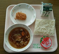 今日は金曜、麺の日です!今日のメニューはちゃんこうどん!