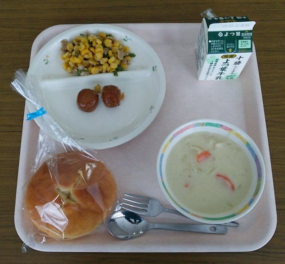 今日は麦工房さんのパンの日です!今日のパンはじゃがいもパン!パン生地の中にジャガイモが練りこまれている、ほんのり甘いパンです。