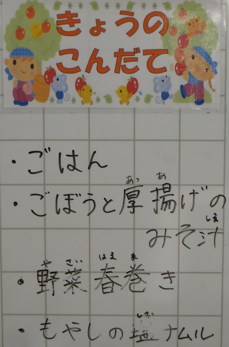 給食の途中、子どもが「今日のメニューにはどれもニンジンが入っている!」ということに気が付きました。そうです、今日の給食はニンジン祭りでもあったのです(笑。