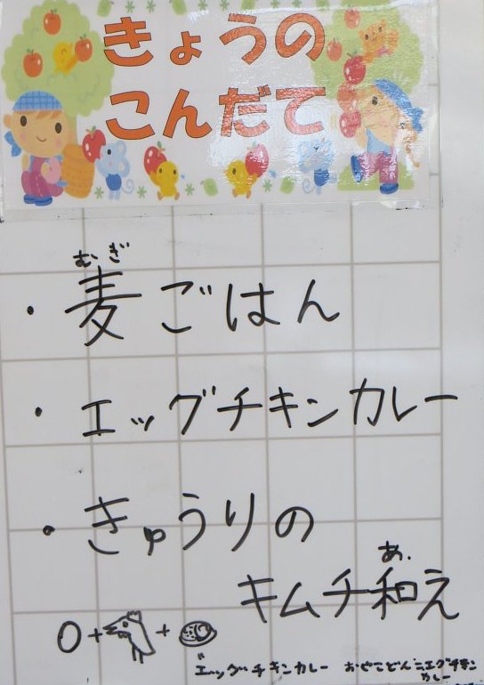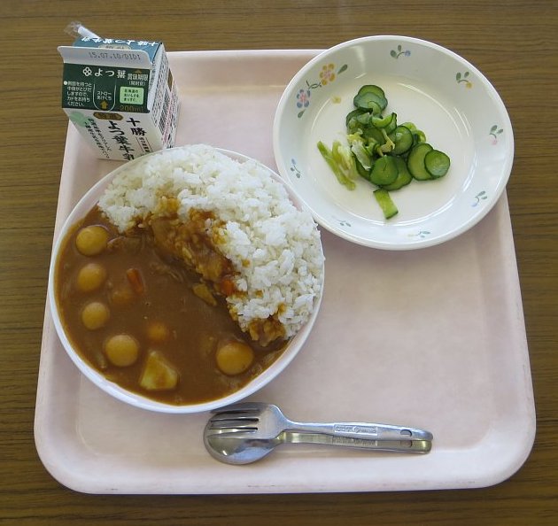 今日はみんな大好き、カレーライス!今日のカレーは、チキンとうずらの卵が入ったエッグチキンカレー。うずらの卵がこれでもかっ!というほど入っていて、食べ応え充分!みんな、もりもりおかわりをしていました!