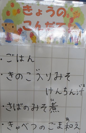 今日の給食は、和食メニュー。汁物には、きのこ入り味噌けんちん汁が出ました。今日の3・4校時、5・6年生の家庭科で清里小の栄養士の先生に来ていただき授業をしていただいたのですが、その先生が「最近給食で良く出るもの」としてきのこを挙げていました。なるほど、最近きのこが出る率が確かに多いなぁ、と思っていたのですが…隣の席で給食を食べていた1年生が、「せんせ~、最近毎日給食にニンジンが入ってる~>_<;」と言っていました。…なるほど、ニンジン嫌いの子にとっては、キノコが毎日入っていることよりも、苦手なニンジンが毎日入っている方が大問題なんですね…。その子が「このニンジンが大根だったらいいのに~」と言っていたので、「うん、それは赤い大根だよ!大根、美味しいね~!」と言ったら怒られました…(^^;。