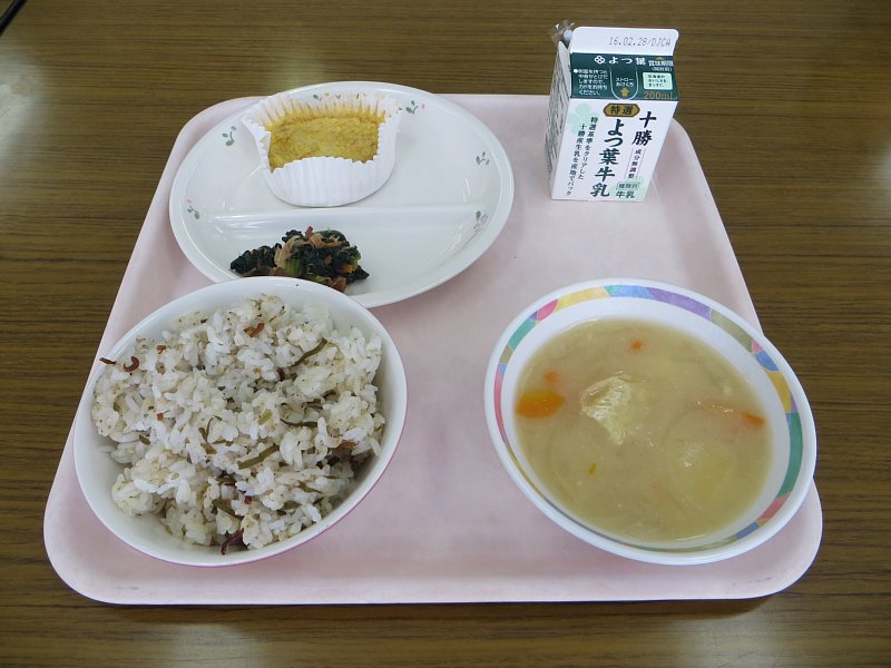 今日のご飯は雑魚ごはん!といってもじゃこだけではなく細切りの昆布やゴマなどがたっぷり入っています!