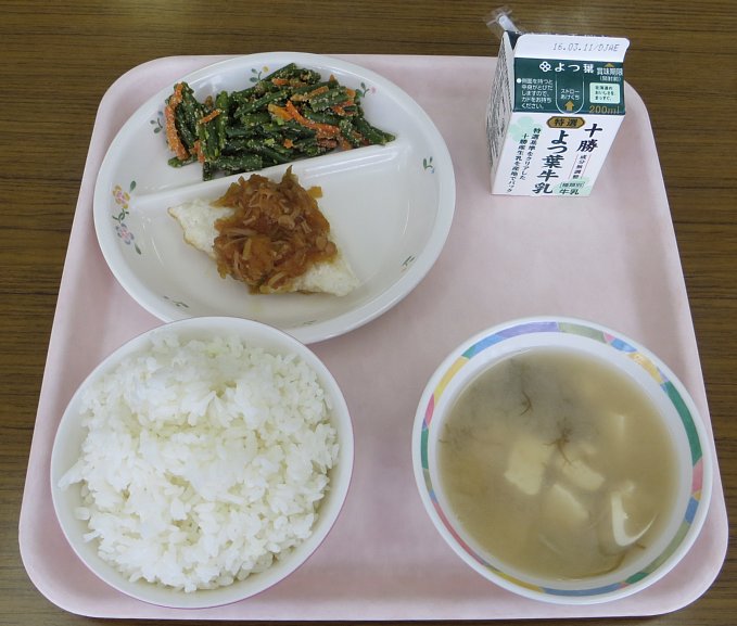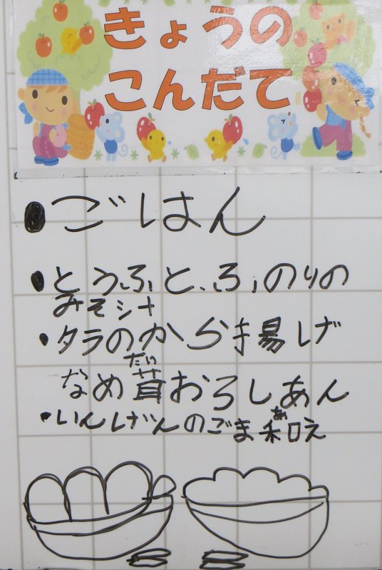 悪天候で始まった月曜日。今日のみそ汁の具は豆腐とふのり!2年生の子が、