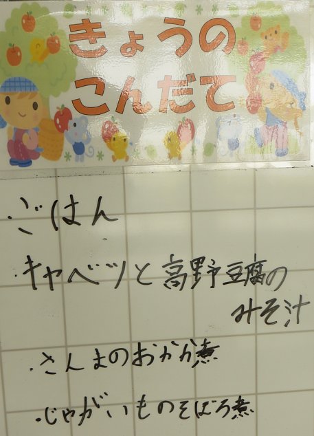 さぁ、新しい州のスタートです!今日のお味噌汁はキャベツと高野豆腐!たっぷりのキャベツの中にちょこっと見える高野豆腐。キャベツの甘みと、その甘みをすった高野豆腐が美味しいお味噌汁でした。