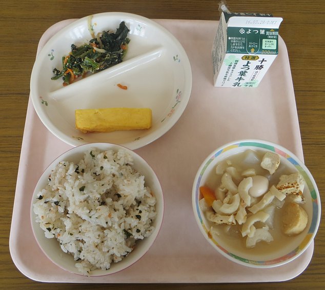 今日のご飯は鮭わかめご飯!鮭のピンクとわかめの緑が桜の樹ようにも見えて、なんだか春を感じます。お味はというと、程よい塩気と磯の香、そして鮭の旨味で、ご飯だけでももりもり食べられます。