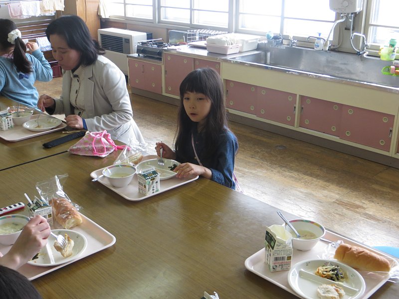 そして、本日より1年生の給食がスタート! 感想を聞いてみると、笑顔で「美味しかった!」とのこと。なるほど、見てみると「お肉が苦手」「あまり量が食べられない」と事前に話を聞いていたのですが、今日のローストチキンも全部食べ、クリーム煮や大根サラダもしっかり全部食べることができました。少しずつ苦手なものを減らして、量も食べられるようになるといいですね。