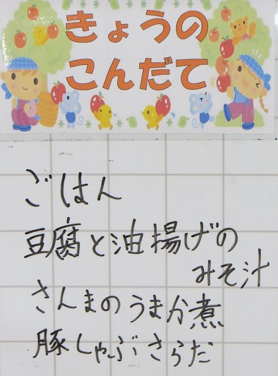 ところで、1年生の子はやはり給食を食べるのにも時間がかかるので、ご馳走様までに食べ終わるのがなかなか難しいのですが、今日は初めてご馳走様前にご飯を食べ終わり、みんなと一緒に「ごちそうさま」をすることができました!またその後に給食室の掃除等の仕事も待っています。これから少しずつ、みんなと同じ時間にご馳走様をして、色々な仕事を覚えていってもらいたいと思います。