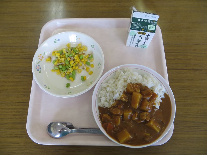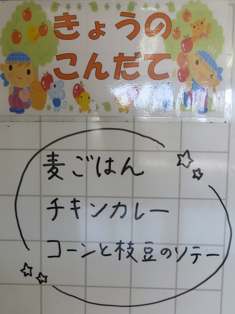 今日のメニューは、みんな大好きカレーライス!チキンたっぷり、野菜たっぷり!子どもにはちょっぴり辛い?でも美味しいカレーでした!中には2回もおかわりをした子も…(^^。
