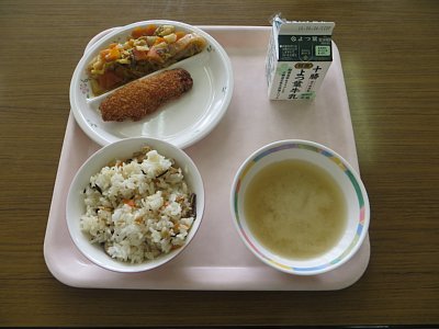 今日のご飯は炊き込みいなり!油揚げも一緒に炊き込んだこの炊き込みいなり、酢が効いていて、食べると元気が出てきそうです。
