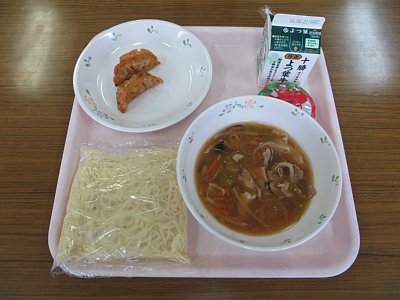 今日は金曜、麺の日です!今日のメニューはちゃんぽん風ラーメン!