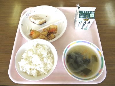 今日のみそ汁は玉ねぎとわかめ!玉ねぎの甘みがたっぷりと味わえます。わかめの香りも玉ねぎと良く合います。