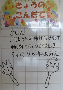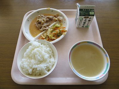 さて、今日の給食のみそ汁の具は、玉ねぎと油揚げ。玉ねぎの甘さと油揚げから染み出る旨味が味噌の香りを引き立てます。