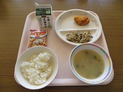 もう一品はうの花炒め。ご飯にのせてうの花丼し煮て食べている子も。甘じょっぱい味付けが、ご飯ともよく合います。