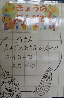 今日の汁物は、玉子と豆腐のスープ!とろみのついた中華スープの中には卵と豆腐がたっぷり!これがメインのおかずと言ってもいいくらい、お腹いっぱいになるスープでした!