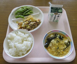 付け合せには枝豆が。子ども達は美味しそうに食べていました。