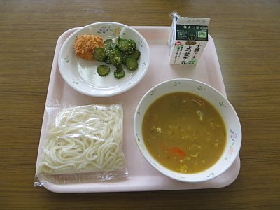 今日は金曜、めんの日です!今日のメニューは豚みそカレーうどん!味噌が入っている分、普通のカレーうどんよりもまろやかで、コクがある感じがします。つるっつる、もちもちのうどんともよく合います!