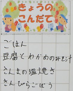 今日のみそ汁の具は豆腐とわかめ。定番の具ですね。今日の様な寒い日には暖かいみそ汁がうれしいですね。