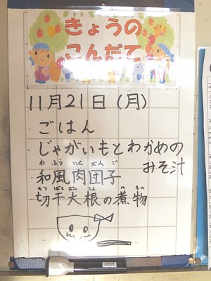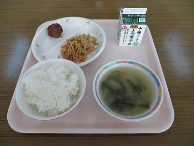 今日のみそ汁の具はジャガイモとわかめ、そして玉ねぎ!どれもみそ汁の具としては定番ですね。寒い日にはうれしい一品です。