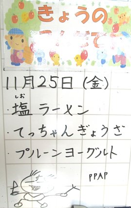 今日は金曜、麺の日です!今日のメニューは塩ラーメン!あっさり、さっぱりとした塩味のスープに、玉ねぎやニンジン、モヤシ、白菜、長ねぎ、きくらげ、そして豚肉が入っています。ここのところ、ラーメンと言えばワンタンメンやちゃんぽん風ラーメンなどが続いていたので、シンプルな塩ラーメンも良いですよね。