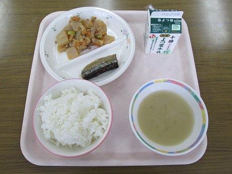 それでは今日のおみそ汁の具から。ごぼうとしめじ、そして玉ねぎがたっぷりと入った味噌汁です。寒い時期には暖かいお味噌汁はうれしいものです。出汁のしっかり効いた、あったか美味しいみそ汁でした。