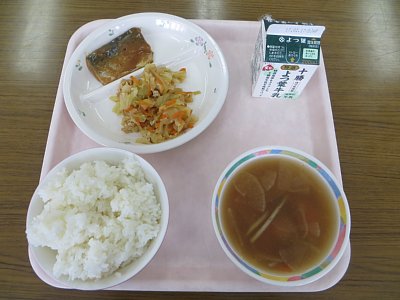 ごはん 白玉だんご汁 さばのみそ煮 キャベツのさっと煮 牛乳