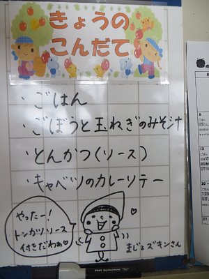 ごはん ごぼうと玉ねぎのみそ汁 とんかつ キャベツのカレーソテ― 牛乳