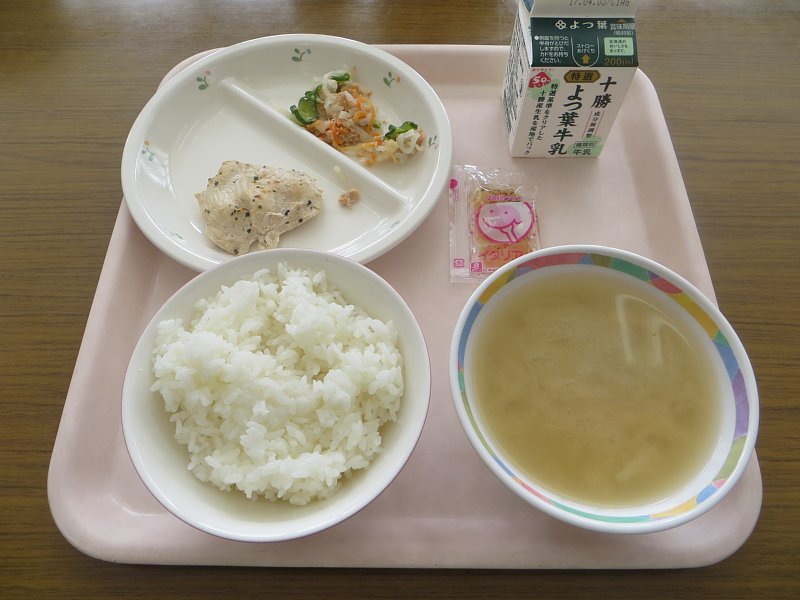 3月23日は、平成28年度最後の給食でした。みそ汁の具は、ゴボウと玉ねぎ!ゴボウのシャキシャキ感と、玉ねぎの甘さが美味しいみそ汁でした。
