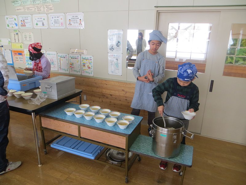 そしてこの日は、山村留学で来ていた4年生の児童の最後の給食当番の日でもありました。最後とはいえ、いつも通り淡々と作業をしていましたが、その胸中は何を思っていたのでしょうか…?1年間お疲れ様でした!地元に戻っても、元気に頑張ってもらいたいですね。