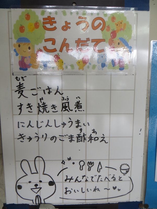 今日の汁物は、すき焼き風煮。すき焼きはふつう、玉子をつけて食べますが、すき焼き風煮は卵をつけて食べません。その分、味付けが少しあっさりしていて、そのまま食べてもちょうど良い味付けとなっています。もちろんご飯との相性もバツグンです!
