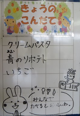そしてイチゴもついていました。今日のイチゴは甘いイチゴとちょっと酸っぱいイチゴがあったようで、子ども達は「あま~い!」とか「こっちはすっぱ~い!」と言い合いながら食べていました。