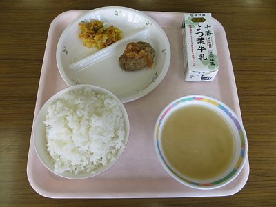 今日のおみそ汁の具は豆腐と油揚げ!鉄板の組み合わせですね。出汁のしっかり効いたみそ汁に香ばしい香りの油揚げ、そして大豆の味がしっかりとする豆腐の組み合わせは、これだけでご飯が何杯も食べられそうです。