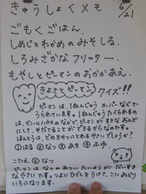 昨日の給食は以上です。