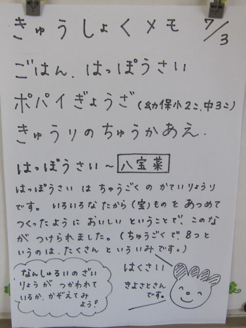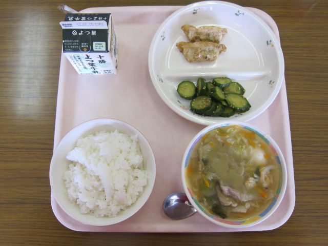 今週は月曜と火曜日に5・6年生が宿泊学習でいなかったため人の少ない給食でした。