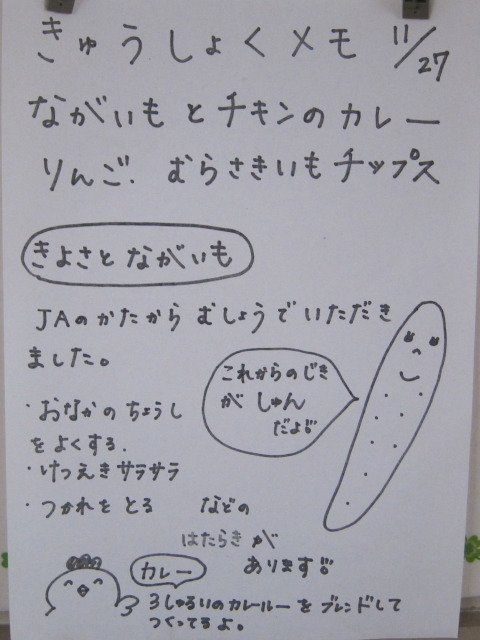 そういえばこの連休中に清里農家さんの長芋掘りを手伝いに行った子がいるとかいないとか。