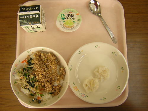 ビビンバ 豆腐シューマイ(2コ) 洋梨フレッシュ(ゼリー) (674kcal) 今日の献立にはヘルシーな豆腐シューマイが出ました。 マラソンの練習で体が熱くなっていたのか、洋梨フレッシュが今日は人気でした。 文責:とも