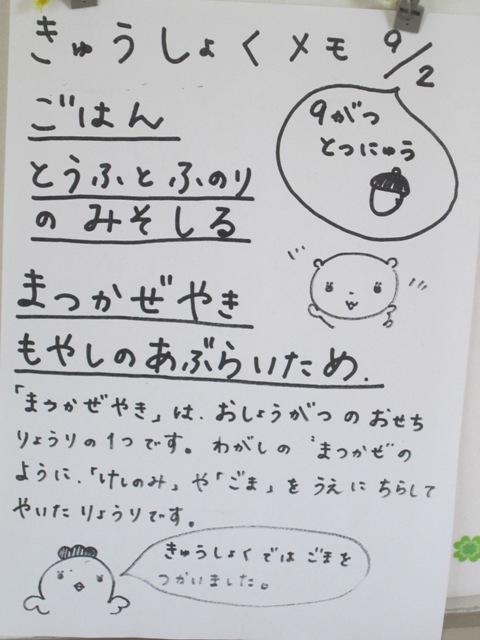 本日の「松風焼き」ですが、きゅうしょくメモによると和菓子の”松風”を模した焼き料理だそうです。