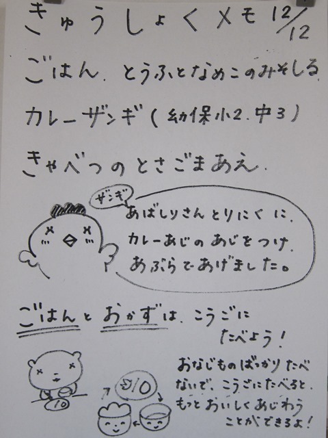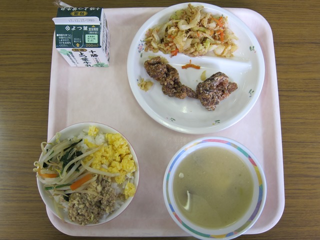 今日は「カレーザンギ」もあったので結構ボリュームたっぷりな給食になってしまいましたね。