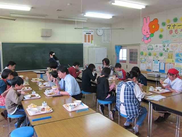 親子調理実習のあとはそのまま給食試食会として親子で給食を食べました。