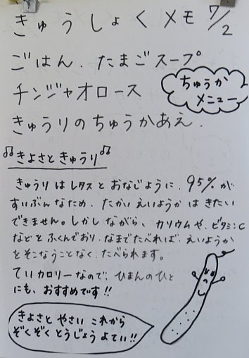 キュウリの中華和えに使われているキュウリは、地元清里産!地元でとれたものを地元で消費する事を「地産地消」といいますが、とても良いことですよね!これからも清里産の野菜がどんどん登場するそうで、そちらも楽しみですね!