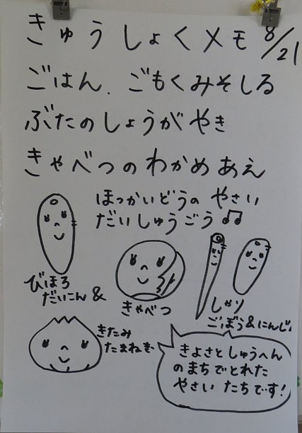 今日はさらに、学校の畑で子ども達が育て、収穫したミニトマトととうきびもついてボリューム満点!ミニトマトは程よい酸味と甘さが、そしてとうきびは優しい甘さが口いっぱいに広がり、とても美味しくいただくことができました。お店売っているものより美味しいかも…?