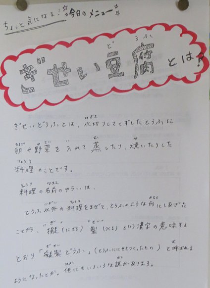 今日は給食さんからの新メニューの紹介プリントが入っていました!こういうのは久しぶりです。うれしいですね~!