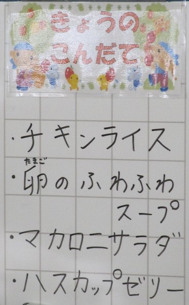 これにゼリーと、連休中に山村留学の説明会で東京に行ってきた学校長のお土産もついて、お腹いっぱいな給食となりました。